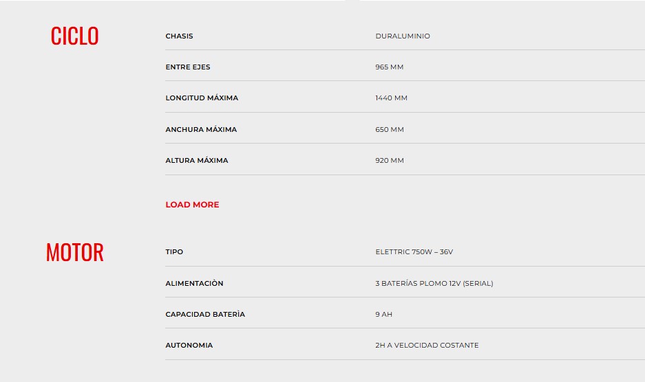 El peso es muy importante en una moto de trial juvenil. Tanto el chasis como el basculante están construidos en aluminio con tratamiento térmico de endurecimiento, logrando una moto robusta que no supera los 24 kg (53 lb). Otra característica muy importante es la distribución del peso: está diseñada con un centro de gravedad optimizado para una conducción cómoda, a la vez que proporciona la máxima tracción.