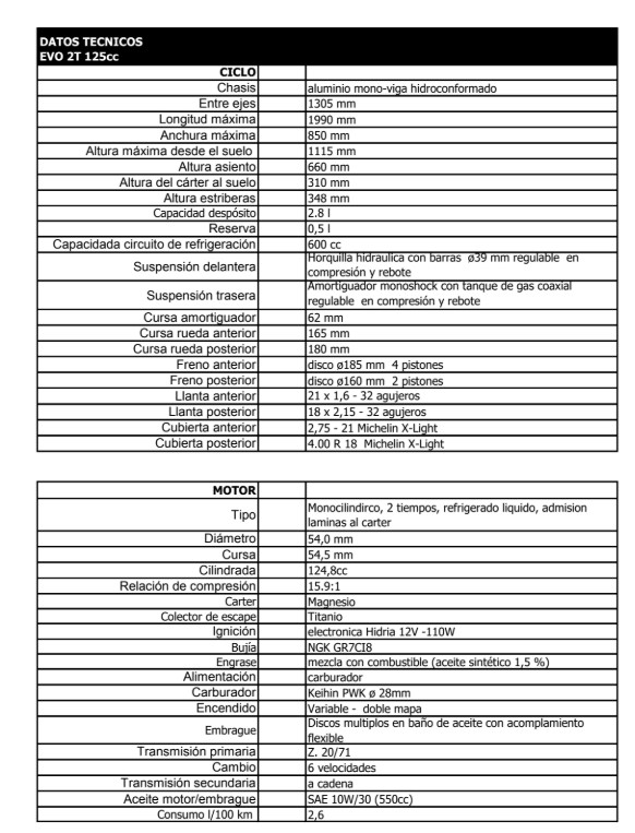 | CILINDRADA | 125, 250, 300 |