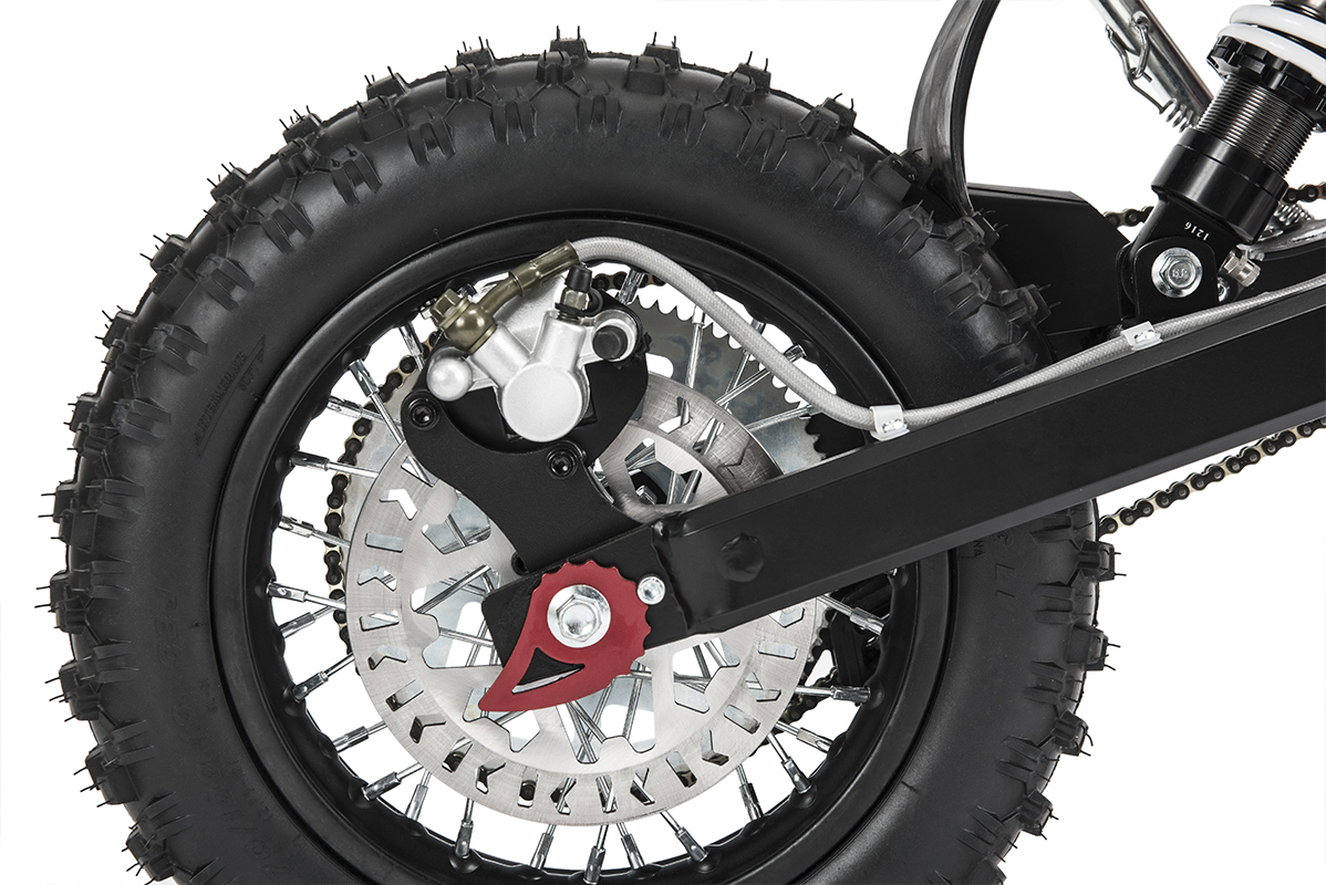 Además, la nueva Minicross-E presenta gráficos actualizados y un equipamiento técnico propio de una moto grande: basculante de aluminio con tratamiento térmico, frenos de disco con accionamiento hidráulico, horquilla delantera hidráulica invertida (barras de Ø 33 mm) y amortiguador ajustable mediante aire y muelle. La total ausencia de emisiones contaminantes y el máximo silencio de la tecnología eléctrica son características muy atractivas de la nueva Minicross-E, también para los padres que desean una moto para su hijo que no altere la tranquilidad.