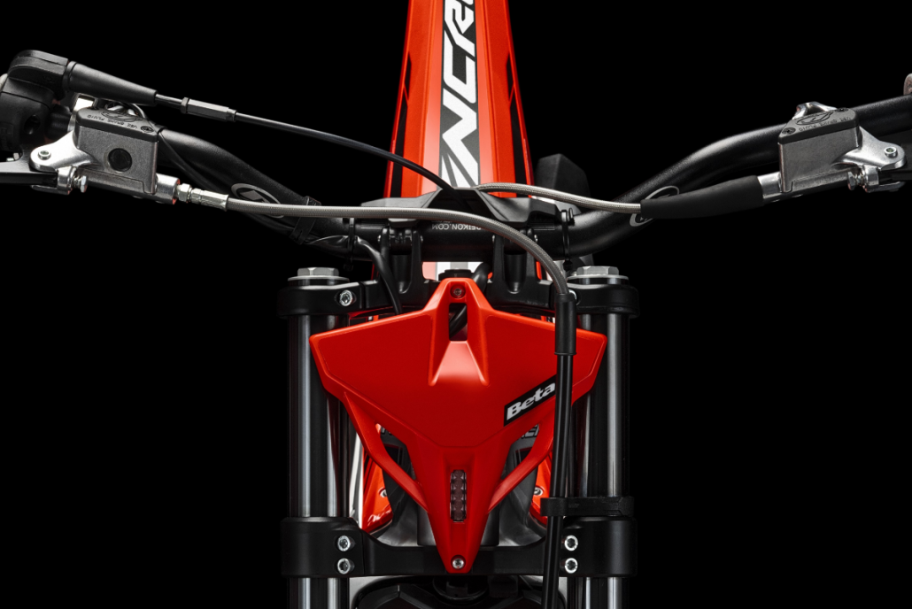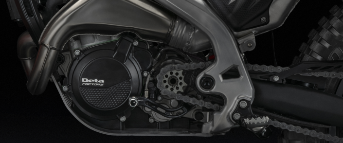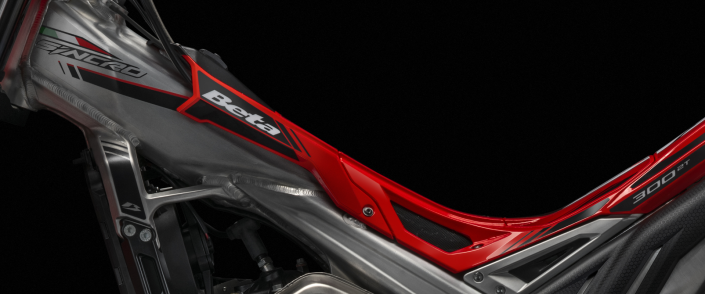 El nuevo chasis de la Beta SINCRO mantiene el diseño dorsal de aluminio con depósito integrado, pero ha sido completamente renovado. La geometría ha cambiado, junto con nuevos elementos forjados en la parte delantera y trasera, estratégicamente ubicados para mejorar el manejo en las secciones. Las piezas forjadas no solo aumentan la maniobrabilidad, sino que también aportan un diseño único gracias a la finura de su mecanizado.