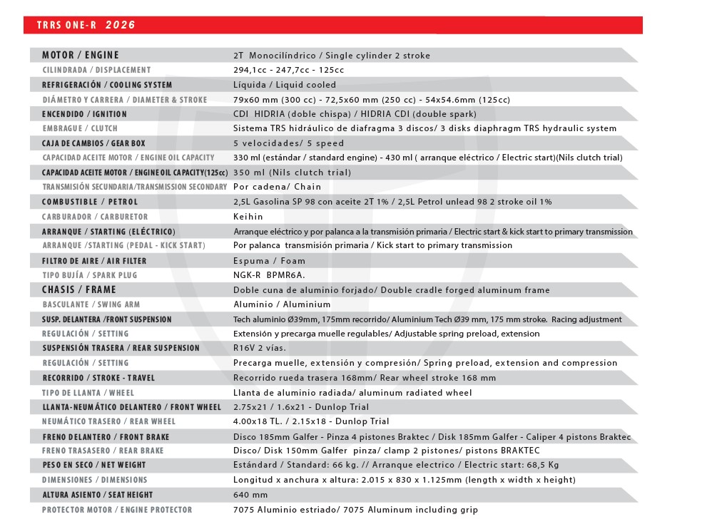 TRRS ONE R 250/300 ARRANQUE ELECTRICO 2026
